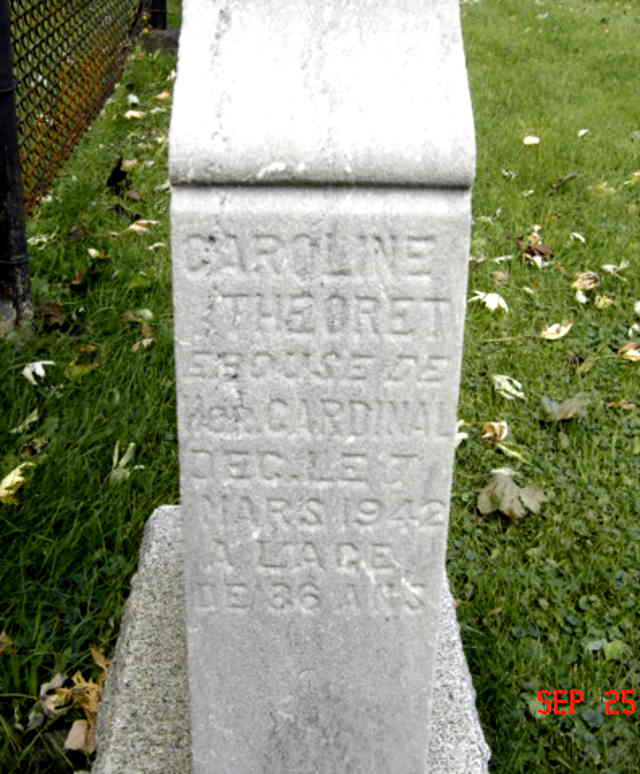Pierre tombale de Caroline Théoret, épouse Cardinal (R)
