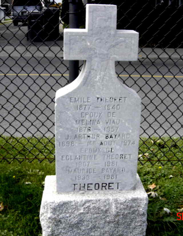 Pierre tombale de Émile Théoret, époux de Mélina Viau; et de Églantine Théoret, épouse de J. Arthur Bayard (R)