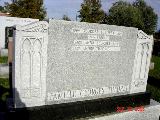 Pierre tombale de Georges Théoret, époux de Anna Legault; et de André Théoret (G2)