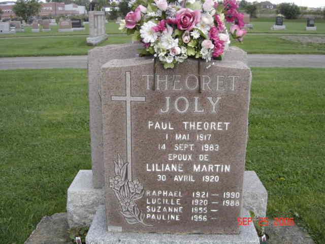 Pierre tombale de Paul Théoret, époux de Liliane Martin (G2)