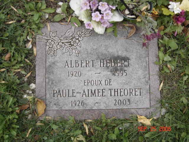 Pierre tombale de Paule Aimée Théoret, épouse de Albert Hébert (R)