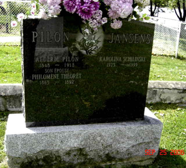 Pierre tombale de Philomène Théoret, épouse de Aldéric Pilon (G1)