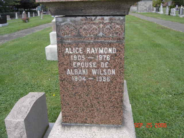 Pierre tombale de Albani Wilson, époux de Alice Raymond (R)