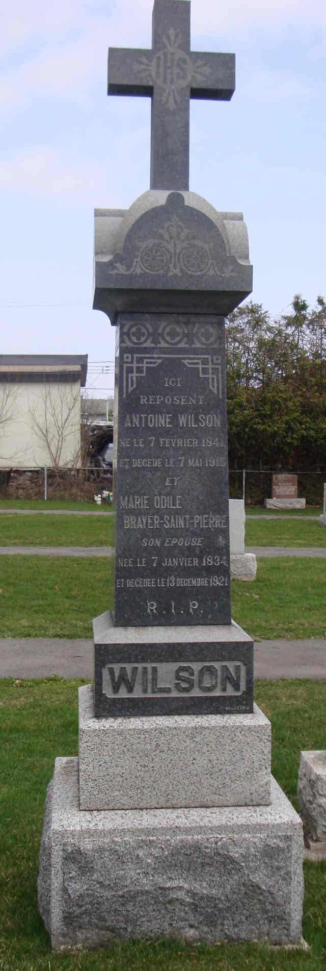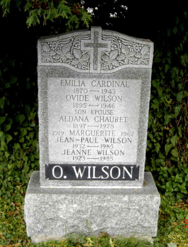 Pierre tombale de Ovide Wilson, époux de Aldana Chauret; et de Marguerite, Jean Paul et Jeanne Wilson (R)