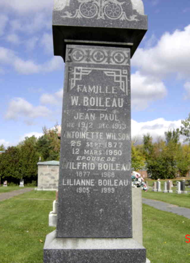 Pierre tombale de Antoinette Wilson, épouse de Wilfrid Boileau (R)