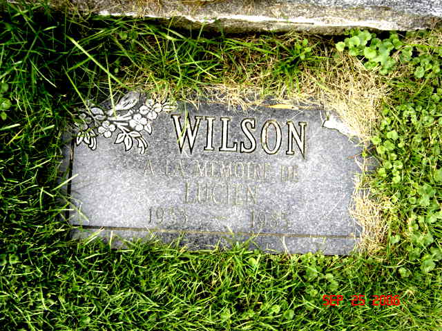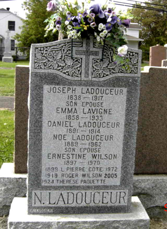 Pierre tombale de Ernestine Wilson, épouse de Noé Ladouceur; et Roger Wilson (R)