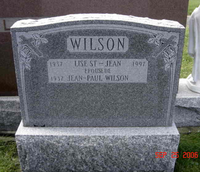 Pierre tombale de Jean Paul Wilson, époux de Lise Saint Jean (R)