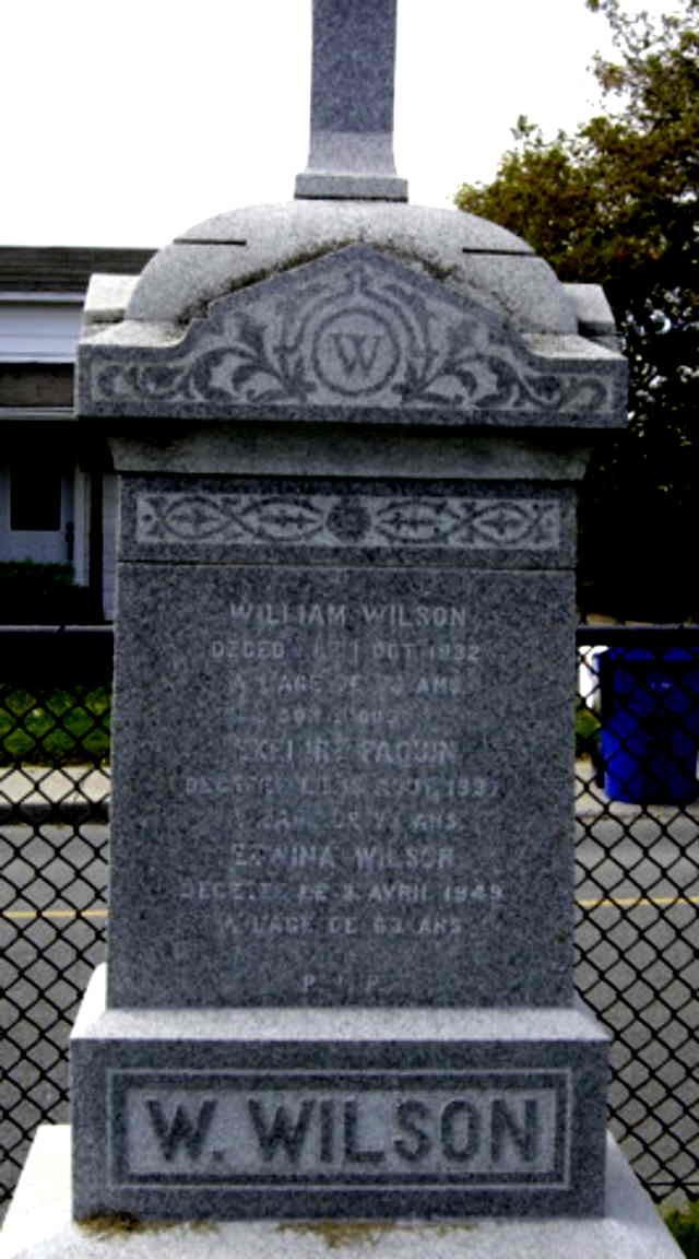 Pierre tombale de William Wilson, époux de Exilire Paquin; et de Edwina Wilson (R)