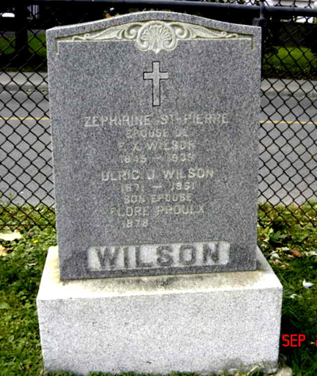 Pierre tombale de François Xavier Wilson, époux de Zéphirine Saint Pierre; et de Ulric J. Wilson, époux de Flore Proulx (R)